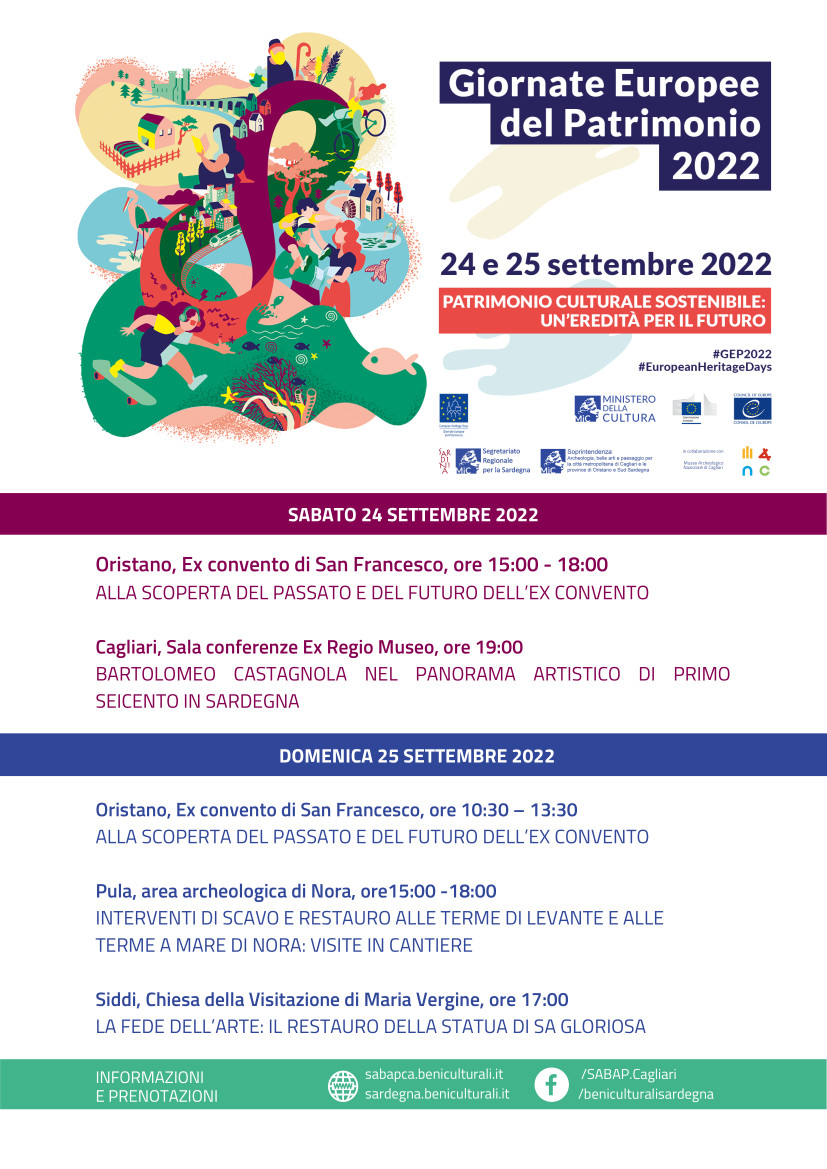 La Soprintendenza ABAP di Cagliari e il Segretariato del MiC per la Sardegna aderiscono anche quest’anno alle Giornate Europee del Patrimonio e alle Aperture straordinarie promosse dal Ministero della Cultura per diffondere la conoscenza del patrimonio culturale e condividere con i cittadini i risultati delle attività di tutela e valorizzazione portate avanti nel territorio.